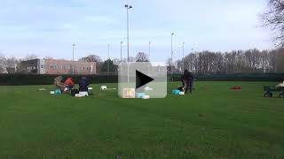 De dag na Kerst ben ik al weer naar de 6e puppyles geweest en omdat de baas vrij was, ging hij mee om te filmen. Dan zijn er tenminste bewijzen dat ik een echte bikkel begin te worden. Er was een soort stelling met wiebelende plastic bekertjes waar de bazin wat lekkers in deed. Nou, ik vond de bekertjes reuze interessant, interessanter dan het lekkers. Niets engs aan maar er waren pups die die bekertjes maar raar vonden en er niet in de buurt durfden te komen. Wát een mietjes!