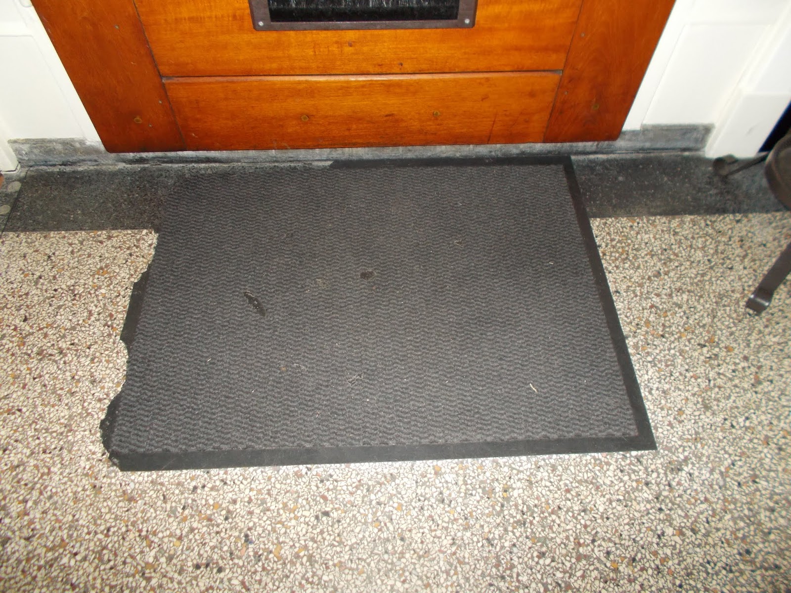Mijn nieuwe passie is binnenhuisarchitectuur en daarom heb ik hier alles eens kritisch bekeken. De mat bij de voordeur kon mijns inziens wel wat worden opgeleukt. Zo’n saaie rand. Ik heb er mijn tanden ingezet en zo ontstond een soort van kartelrand. Een paar dagen later besloot ik toch om de hele rand er maar af te halen. Zo je ziet, is dat nog best veel werk want ik ben nog lang niet klaar.