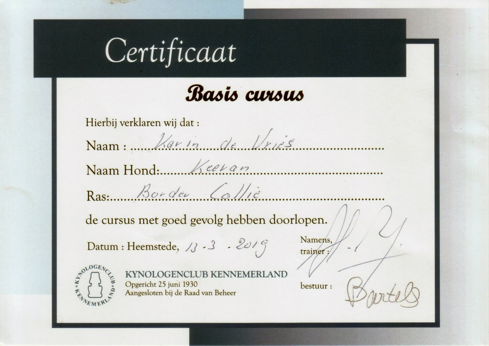 Diezelfde week was ook de laatste les van de basistraining. Bij deze training wordt geen examen afgenomen maar we kregen wel weer een certificaat.