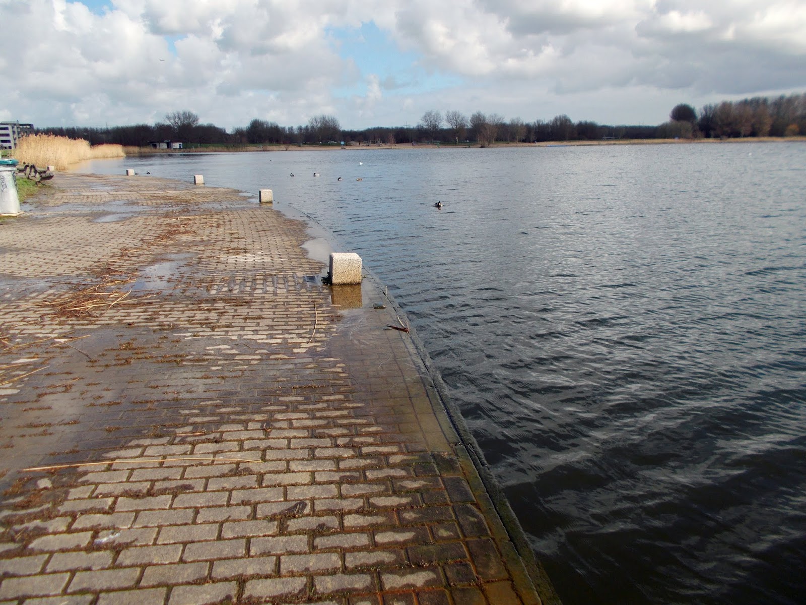 Oma woont aan een recreatieplas en daar werd ik ’s middags door de bazin uitgelaten. Maar het stormde en regende die dag heel hard en de oevers van de plas stonden helemaal blank. En wat denk je dat er gebeurde? Ik zag niet dat het water helemaal over de tegels was gestroomd en toen ik achter een eend aan wilde gaan, rende ik zó het water in.
