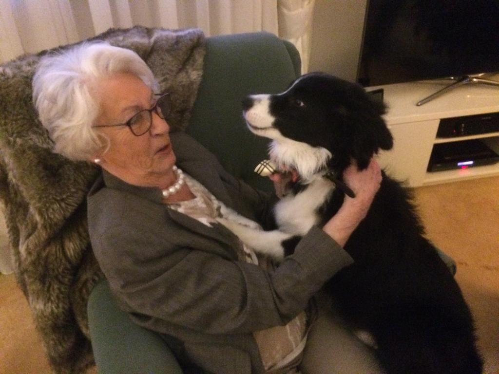 Laatst was de moeder van de bazin (dus een soort oma? ) jarig en we gingen op verjaardagsvisite. Voor deze gelegenheid had ik mijn stropdasje omgedaan. Oma is gek op me en ik heb haar dan ook een flinke verjaardagsknuffel gegeven.