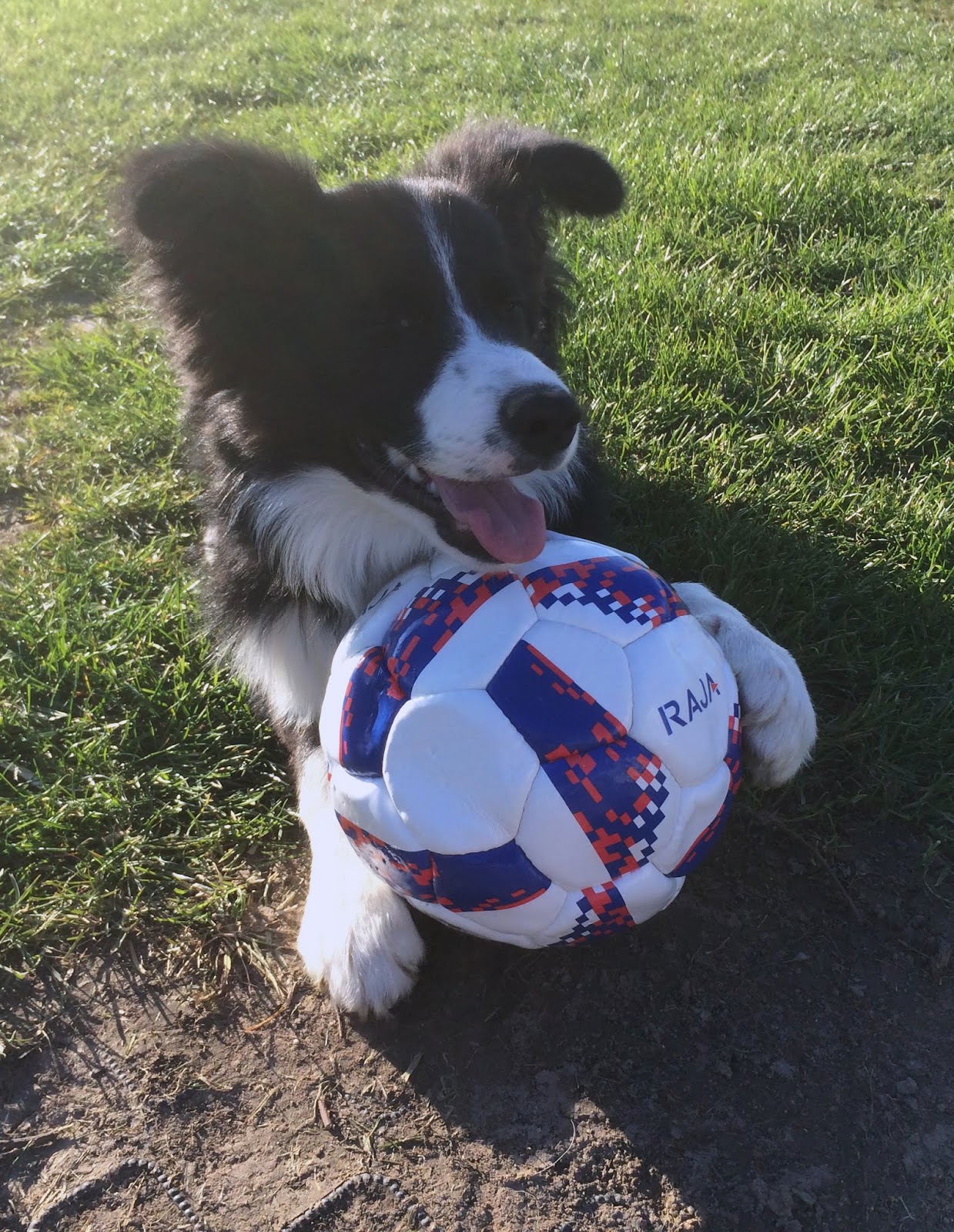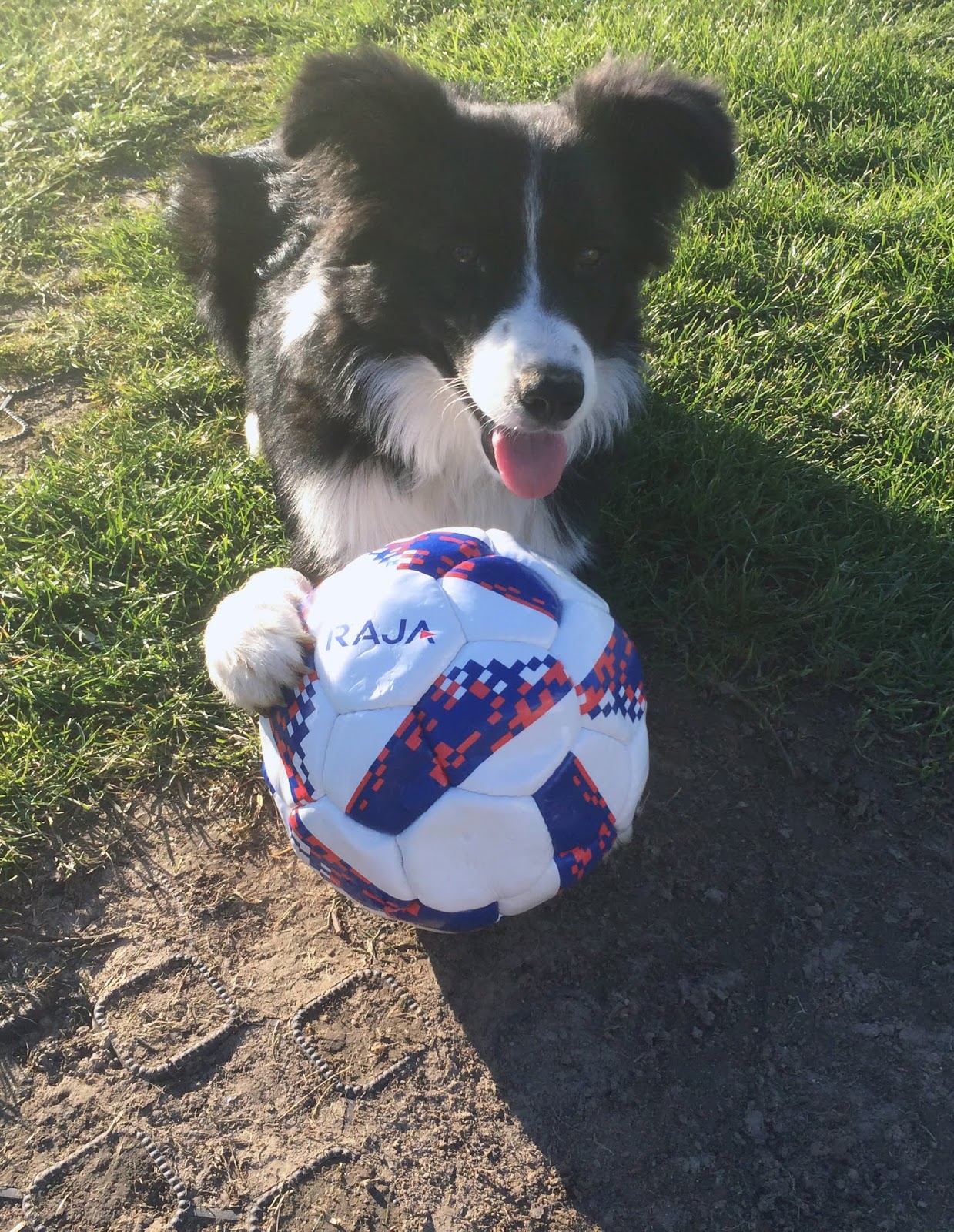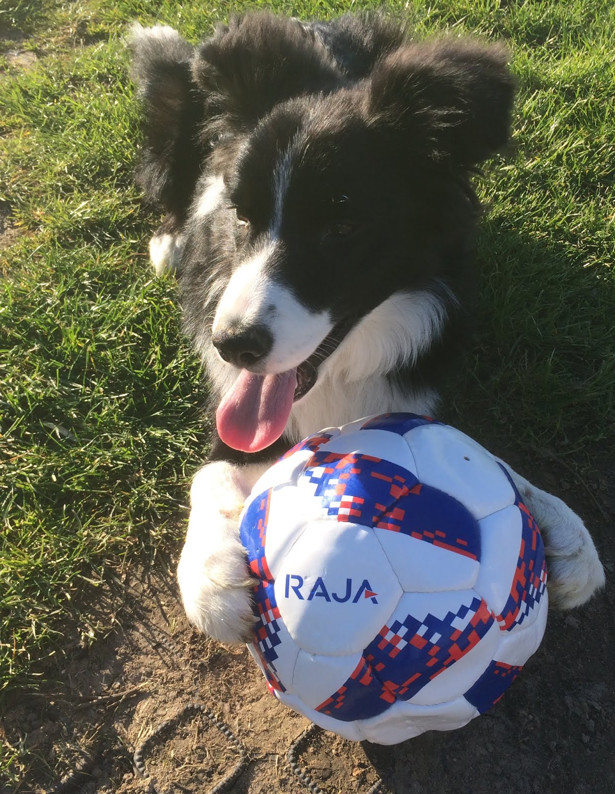 Hoe ik met Bodie ren, met de baas voetbal en aan het crossen ben door een weiland met heel hoog gras zie je in dit filmpje: